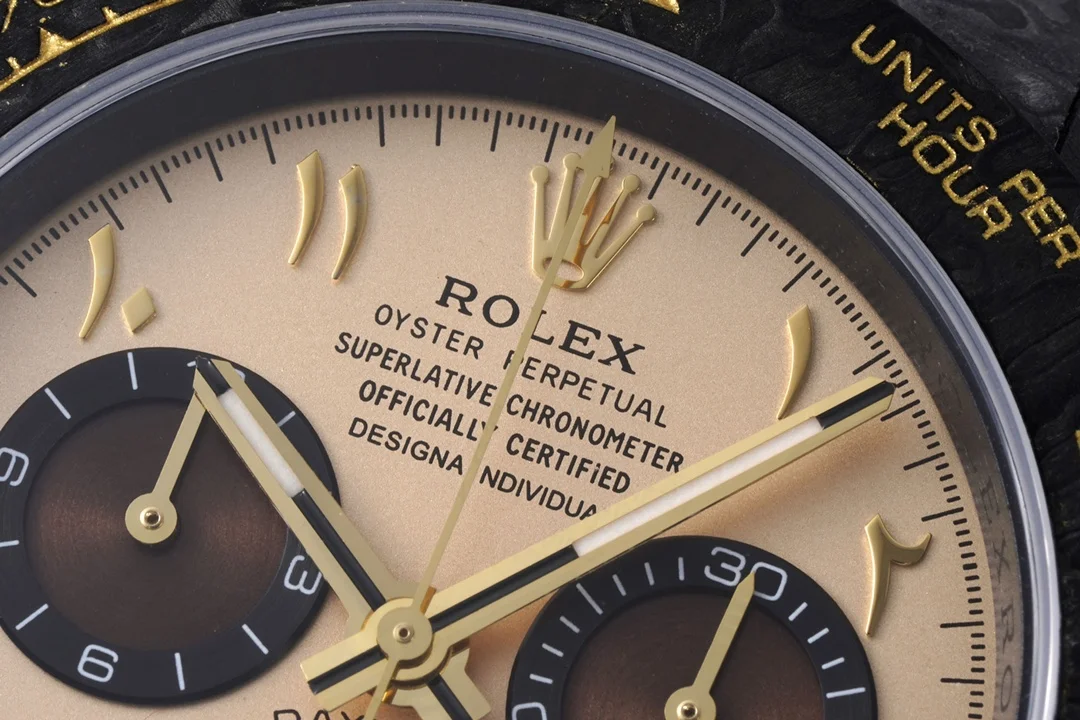 Buy Arabic Daytona Dew Collection Premium Super Carbon Fiber Customized Edition Cos today. Perfect for collectors and enthusiasts seeking Rolex super clone watches, replica watches, luxury replicas.