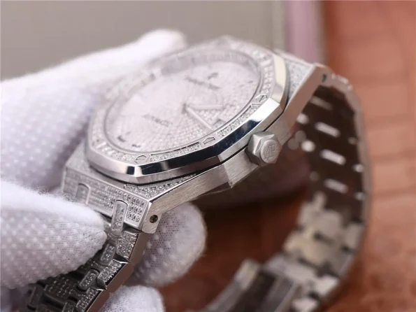 Ap Royal Oak Series 15452 men filled with star diamond watches, hand-set with more than 1000 Mossan diamonds (hardness and gloss are most similar to diamond silicon material, with at least 10 times the magnifying glass to see its inclusions to identify ),
