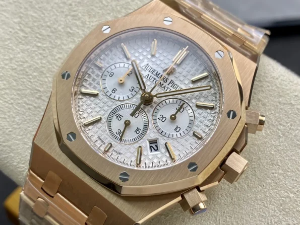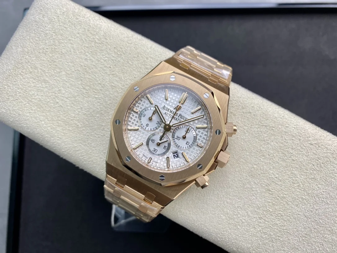 Audemars Piguet Royal Oak Chronograph White Dial Rose Gold on 904L Steel – 1:1 Superclone