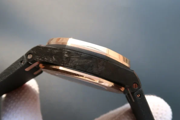 Case: Improved Real Forged Carbon case with glossy finish as genuine, unique pattern on each case, solid titanium caseback with perfect engravings