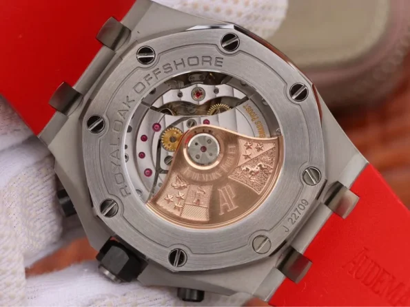 Movement Base Movement: SWISS 3120 automatic chronograph movement at 28800vph; Decoration: Platinum plated movement plate and rotor which are made according to the genuine movement, the best looking AP Calibre 3126 Movement Clone at the moment.