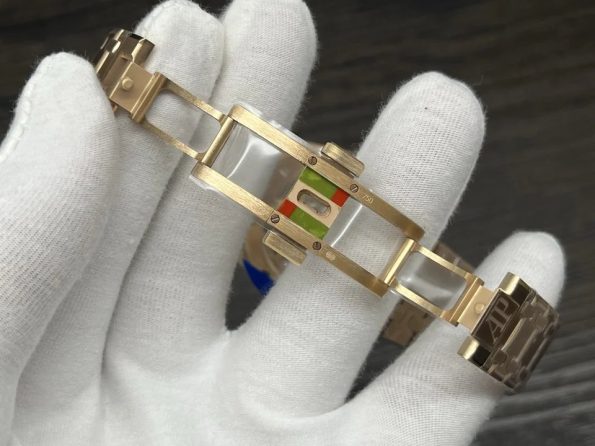 * **Bracelet:** Integrated rose gold-plated stainless steel bracelet with AP folding clasp