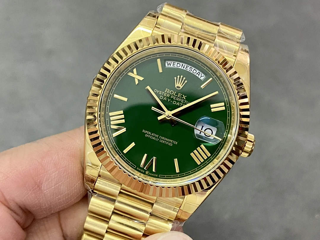 Best day date replica18K Yellow Gold Plated Super clone 1:1 Superclone 2836 Movement 40mm Counterweight day date Same weight as Original Rolex Day date 40m