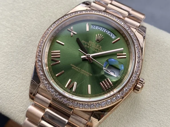 The GMF V2 Tungins Steel 40dd Rolex Weekly Journal Champaign 2836 Movement 40mm Counterweight day date is a high-quality Superclone watch that is sure to turn heads. It is a great option for those who are looking for a luxury watch that is affordable.