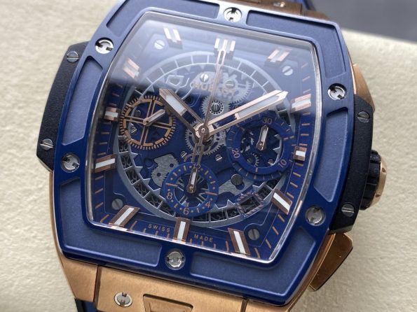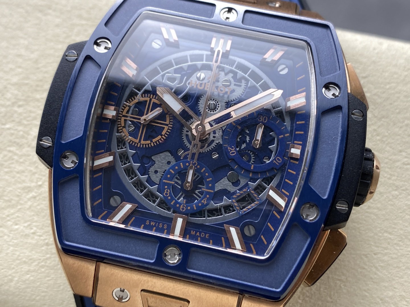 * Type: Hublot Caliber HUB4700 (or relevant skeletonized chronograph caliber that is being replicated). Automatic skeleton chronograph movement.