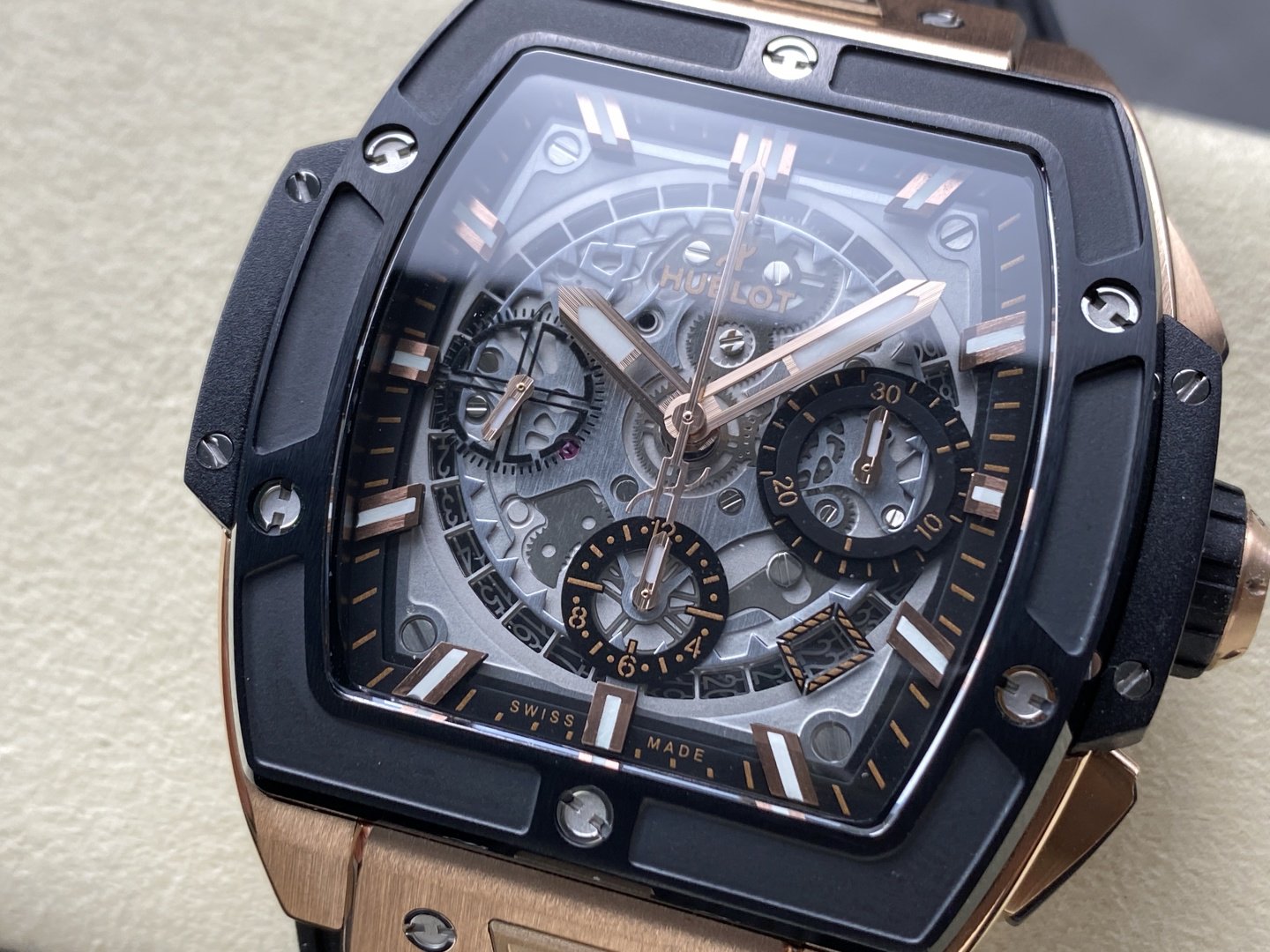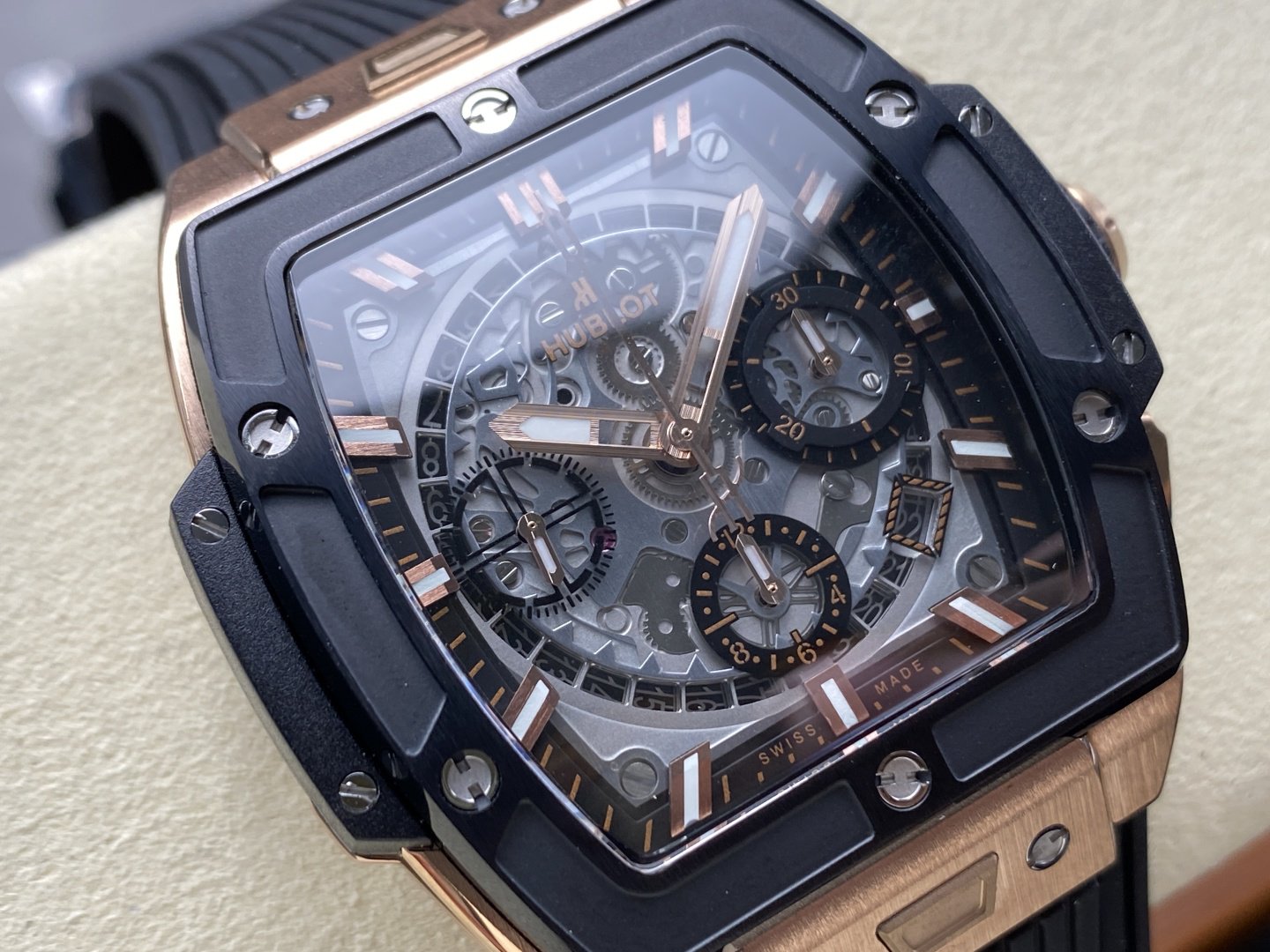 * A striking and complex timepiece that showcases the technical prowess and distinctive design of the Hublot Spirit of Big Bang collection. Every detail, from the multi-layered case to the intricate skeletonized movement, is executed to the highest standards.