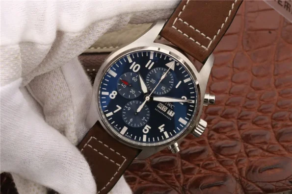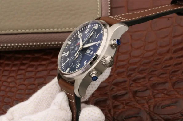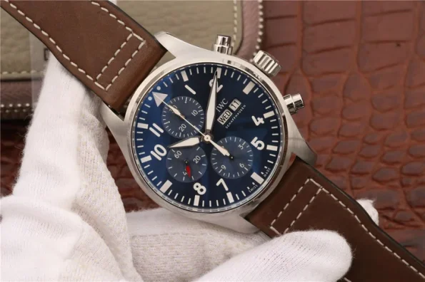 World Pilot Series IW377714 original open-mode flyer. 7750 automatic mechanical movement, 43 mm, men’s power reserve: 44 hours Appearance diameter: 43 mm case thickness: 15 mm case material: stainless steel dial color: blue dial shape: round mirror material: double-sided anti-reflective convex sapphire glass mirror crown material: fine steel strap material: calfskin buckle material: steel waterproof depth: 150 meters