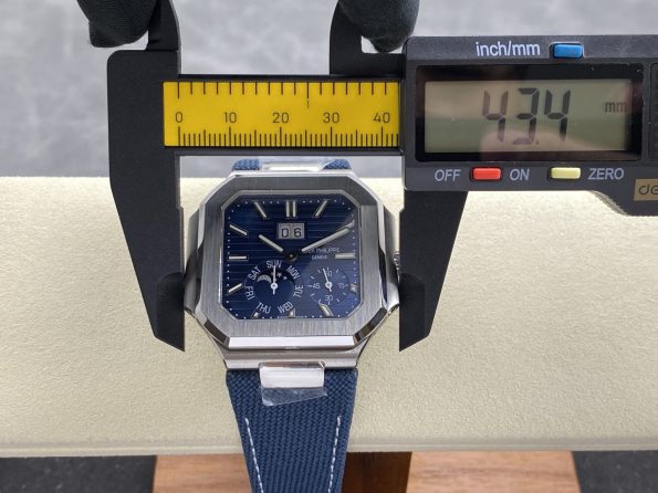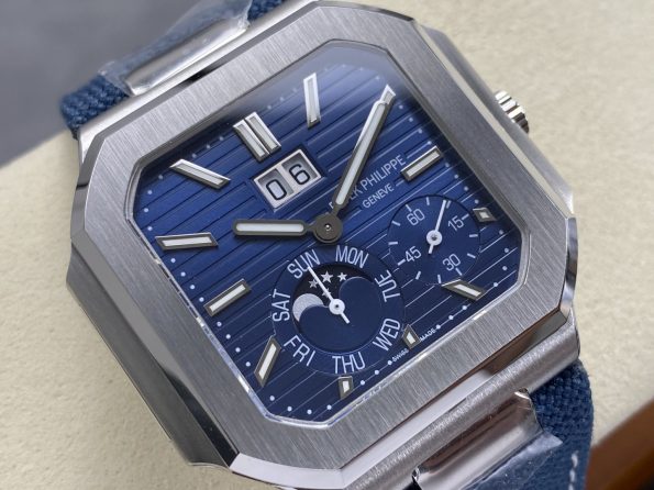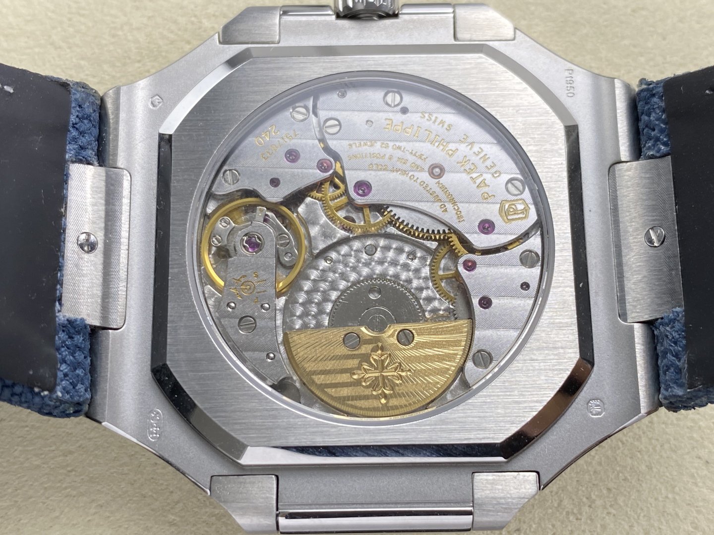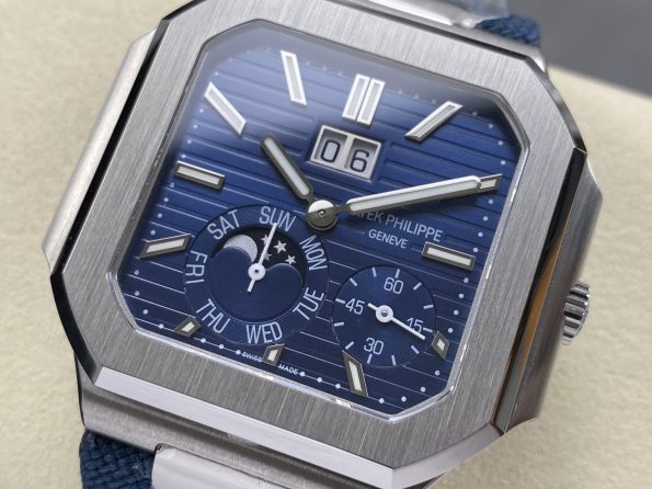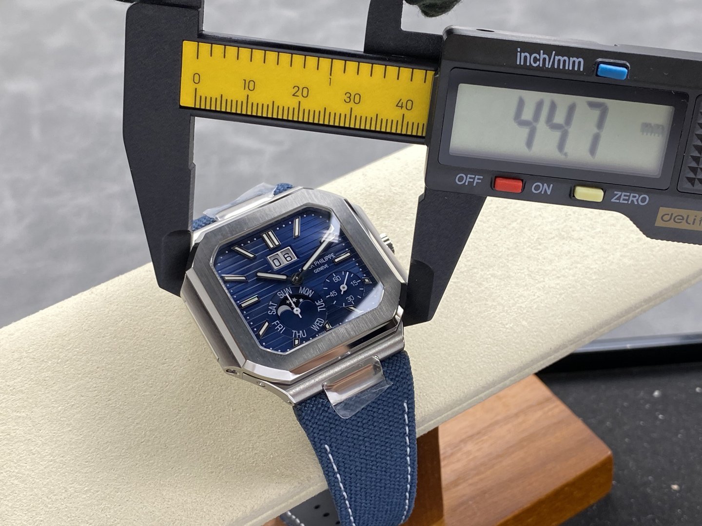 A refined 1:1 superclone of the platinum 5822P featuring instantaneous grand date, day display, and moonphase — engineered with full functionality and sleek proportions.