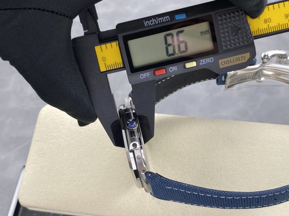 Case: 44 mm × 8.6 mm, 904L stainless steel (platinum-finish)