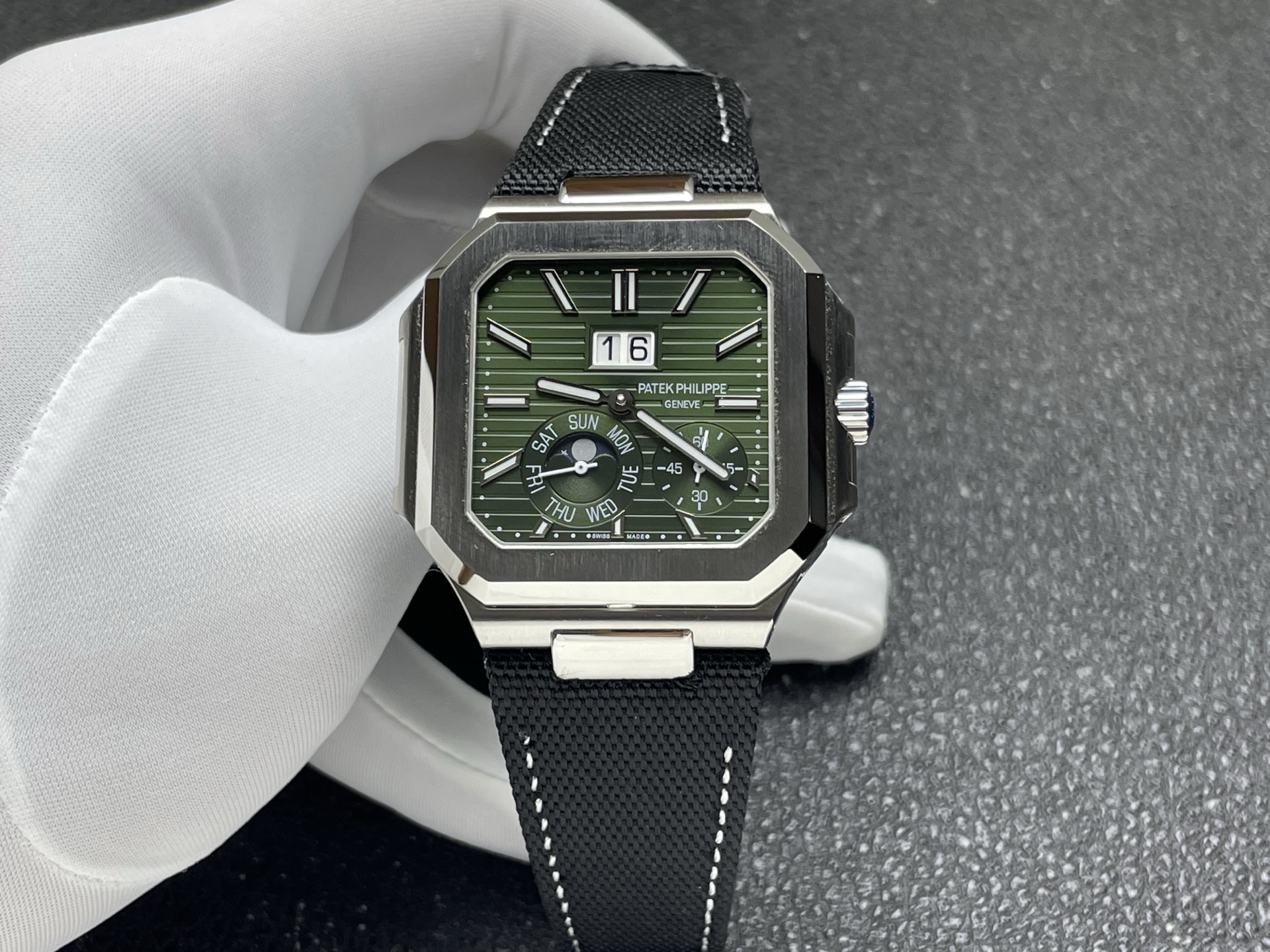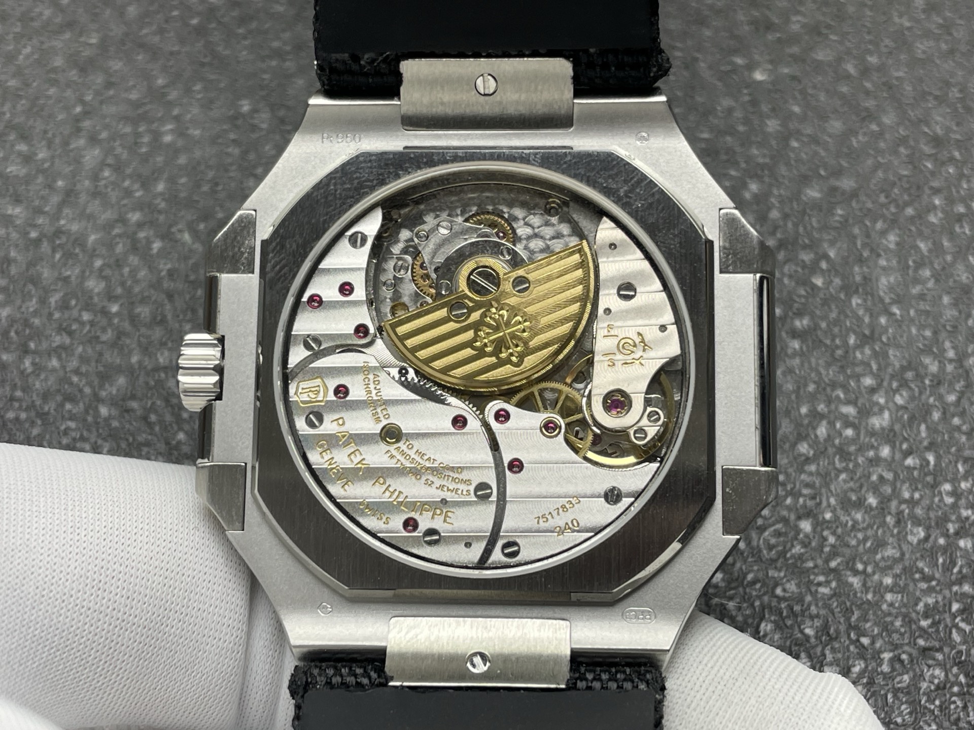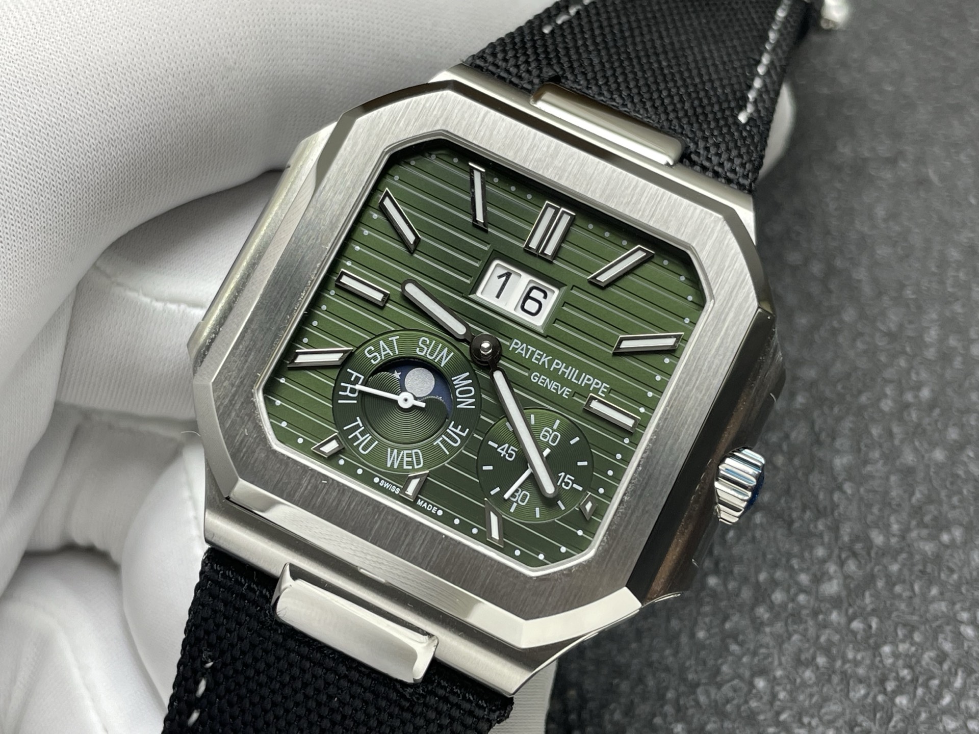 A refined 1:1 superclone of the platinum 5822P featuring instantaneous grand date, day display, and moonphase — engineered with full functionality and sleek proportions.