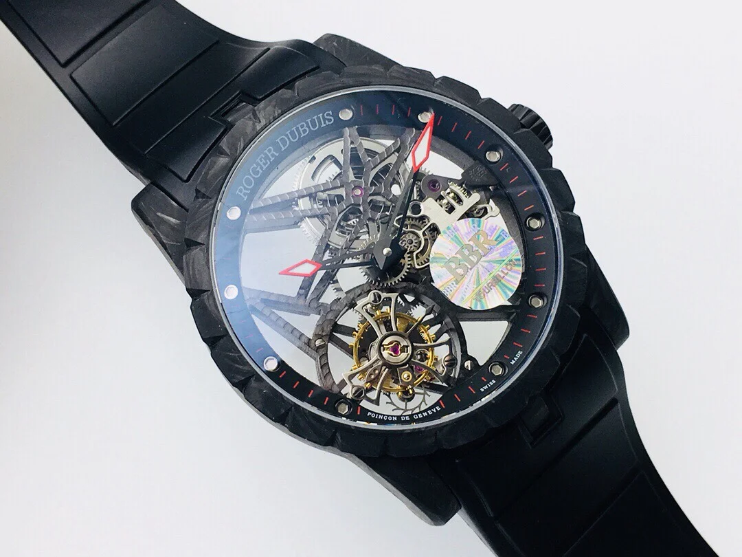 Buy Roger Dubuis – Excalibur Spider DBEX0577 Carbon Fly Tourbillon 1:1 Superclone today. Perfect for collectors and enthusiasts seeking Roger Dubuis super clone watches, replica watches, luxury replicas.