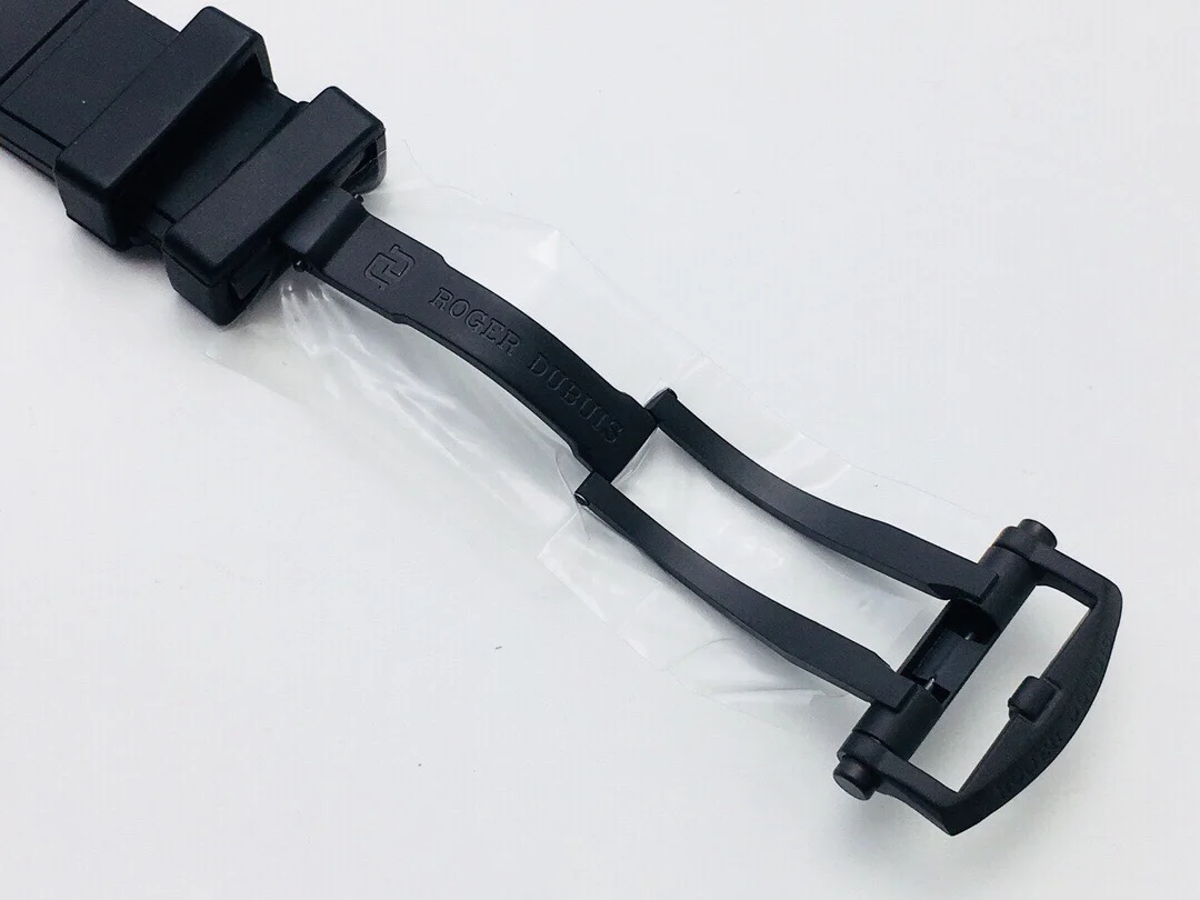 Bracelet: White & Black Rubber Strap with Single Fold Deployant Buckle