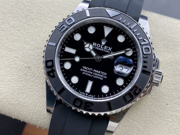 Yacht-Master 42mm Black Dial – 1:1 Superclone Steel Case & Rubber Strap